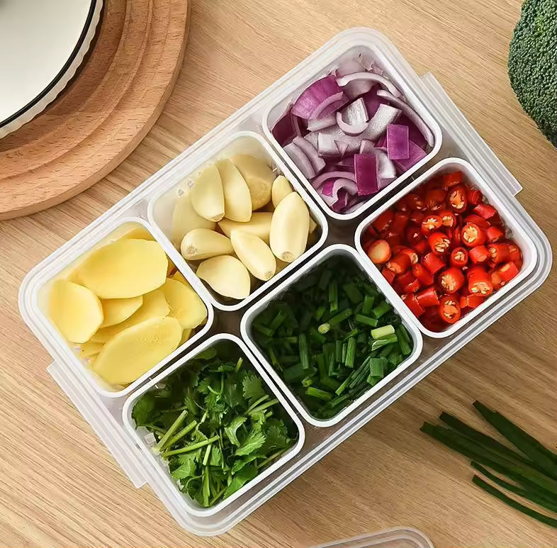 Keep your fridge tidy and food fresh with this multipurpose storage box. Perfect for garlic, ginger, onions, fruits, and veggies. Features a drain tray to reduce moisture and extend freshness. Stackable, compact, and transparent for easy use.