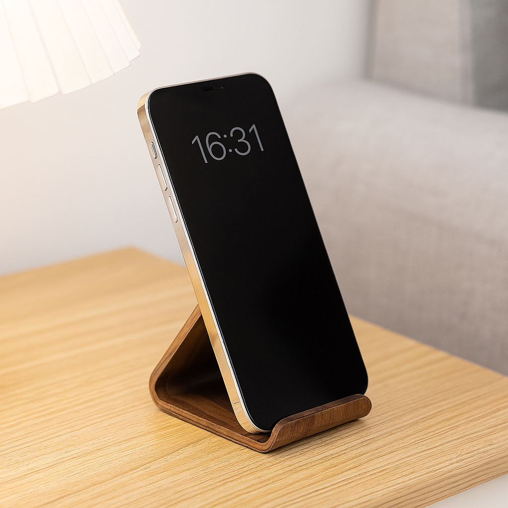 Solid Wood Phone Stand – Minimalist Black Walnut Holder for Desk & Home