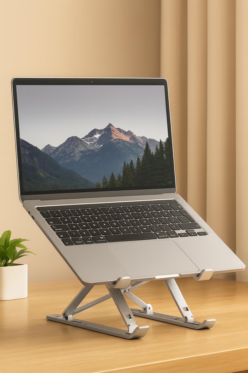 Enhance your workspace with our Aluminum Laptop Stand — a sleek, foldable, and ultra-lightweight support designed for stability and comfort. Crafted from high-quality aluminum alloy, it offers a modern look that blends perfectly with any minimalist setup.
